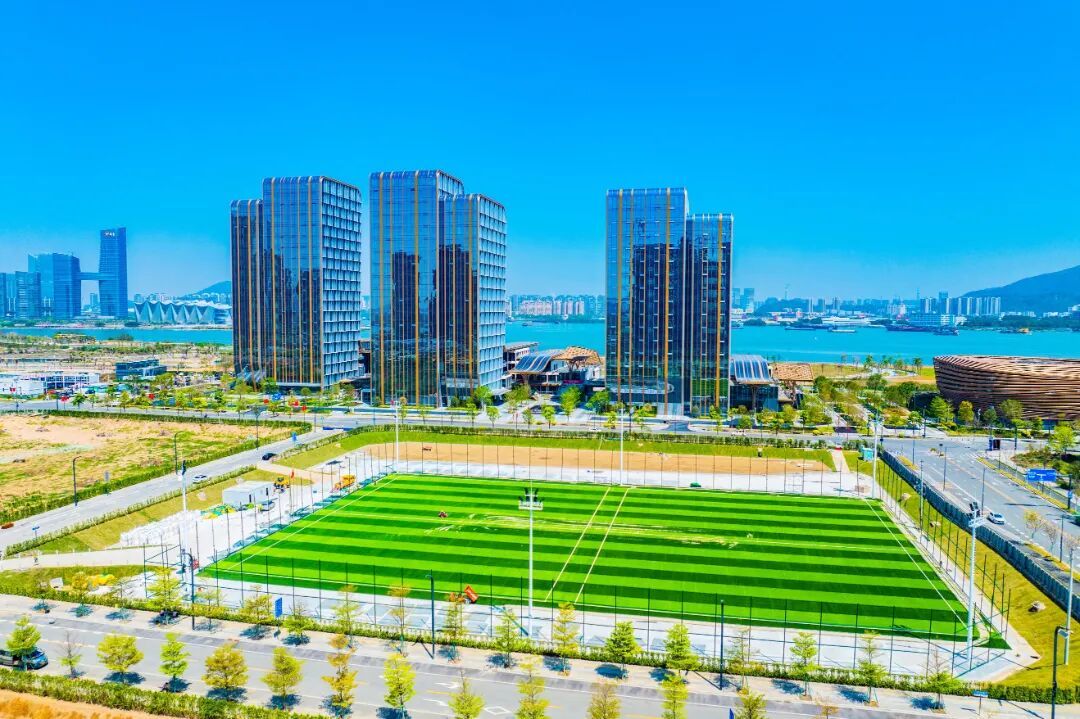 广州南沙国际金融岛足球公园竣工后全部14块七人制标准场地,可根据需求灵活转换为7块十一人制场地,全面覆盖专业训练、业余赛事、全民运动等多元场景。无论是专业球队训练,还是朋友组队踢球,都能找到专属空间。